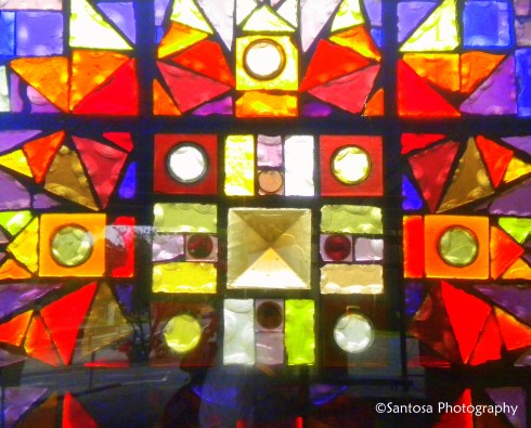 Here are four glass panels depicting the four seasons. It was created by Leonard French which was purchased and installed in this place in 1978. They were set up beautifully in David Myers Building in La Trobe University facing a beautiful green lady statue, maple tress and a green garden.