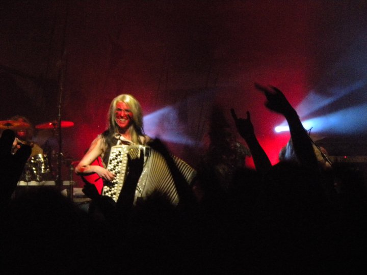 Strongly characterized with face paints and war robes, Turisas’ lyrical themes are around wars in Finnish and surrounding contexts. Also, as opposed to traditional power and symphonic metal, Turisas uses violin to play their solos. Sometimes, previously, there was a ‘duel’ between their violin player, Olli, and their accordion player (Netta). Now that Netta (Accordion) and Hanu (Bass) decided to depart ways due to friendly personal reasons, this violin-accordion duel won’t exist anymore. Still, they got good keyboardist and bass player as the new members. I saw these new line-up performed the second time and it was still impressive.