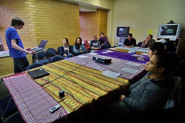 Dari perpustakaan, kami berjalan menuju Martin Building dan tiba jam 11.25 siang, 5 menit sebelum acara dimulai. Kami kemudian diperkenalkan dengan beberapa orang seperti Prof. Kaori Okano dan Prof. Harry Aveling dari Faculty of Humanities and Social Sciences. Kami juga bertemu dengan Irene Ritcher, seorang penulis buku yang memiliki ketrampilan memainkan dan mengajar gamelan Jawa. Kami juga berkenalan dengan beberapa mahasiswa yang belajar bahasa Indonesia, seperti Richard, Jo, Suli, Catherine, dan kawan-kawannya.