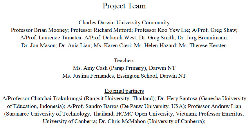 Sedikit cerita tentang tahun ini. Saya ditawari berkolaborasi dengan kawan saya dari Charles Darwin University (CDU), Australia. Saya iyakan setelah membaca draft proposal yang ia kirimkan. Saya melihat ada potensi hebat didalamnya, mengenai kerjasama banyak akademisi dari berbagai negara. Dengan dukungan CDU dan akademisi-akademisi besar ini, saya optimis tahun 2015 akan menjadi sangat menjanjikan. Bisa lihat nama saya? Hehe… Semoga bisa berkolaborasi dengan baik.
