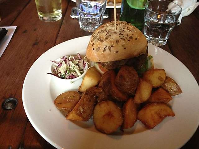 Restoran ini memiliki makanan khasnya, yaitu Tramway burger. Makanan ini beda dari burger biasanya. Tebal rotinya dengan daging patty yang besar pula, dimasak matang. Ada wedges dan salad disampingnya. Seperti biasa, ada tusukan besar menembus burger agar tidak berantakan. Untuk minum, kami termasuk yang ingin mencoba. Biasanya yang beralkohol. Jujur, awal saya belum pernah (berani) minum yang begini. Karena pandangan orang, larangan agama, takut ketagihan, dan seterusnya. Namun saya berpikir ke depan. Dengan network banyak dan beragam, saya harus mampu beradaptasi di situasi manapun.
