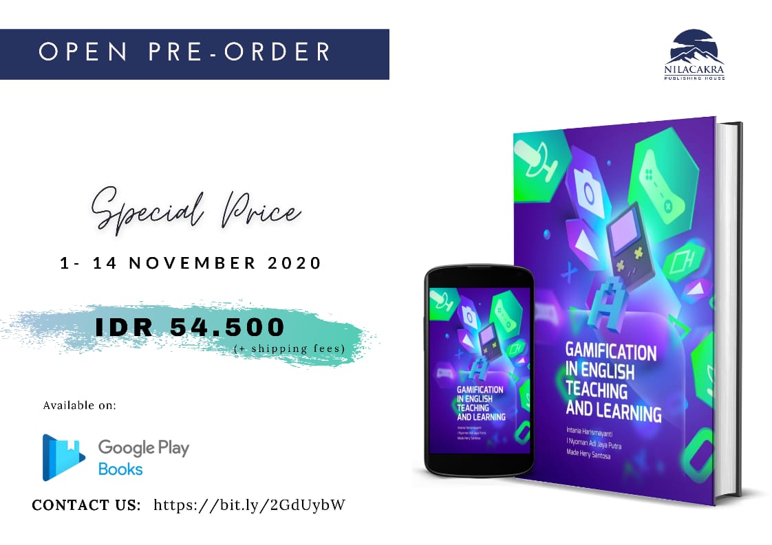 Buku Gamification in English Teaching and Learning Posted on November 1, 2020 by Made Hery Santosa Posted in AcademicTagged buku, ELT, gamification Open Order untuk buku kami yang terbaru “Gamification in English Teaching and Learning.” Hubungi CP di tautan ya Ibu Bapak, teman-teman :) Mari menulis untuk masa depan ^^#edtech#elt#book#menulis Share this: Click to share on Facebook (Opens in new window) Facebook Click to share on Threads (Opens in new window) Threads Click to share on X (Opens in new window) X Click to share on WhatsApp (Opens in new window) WhatsApp Click to share on LinkedIn (Opens in new window) LinkedIn Click to share on Telegram (Opens in new window) Telegram Click to share on Bluesky (Opens in new window) Bluesky Click to share on Pinterest (Opens in new window) Pinterest Like Loading...