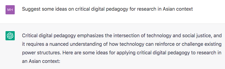 Prompt #2: Suggest some ideas on critical digital pedagogy for research in the Asian context