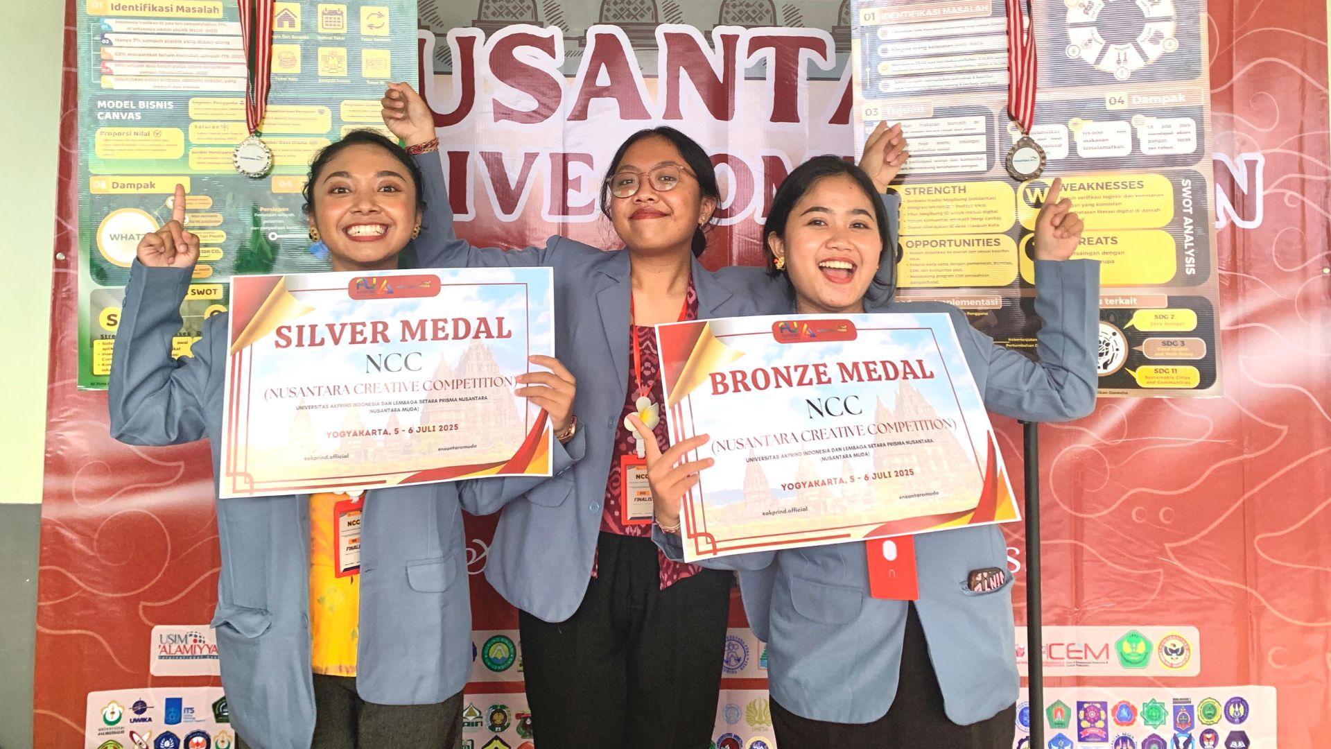 Singaraja- Mahasiswa Universitas Pendidikan Ganesha (Undiksha) kembali mengukir prestasi. Kali ini, prestasi datang dari ajang Nusantara Creative Competition yang diselenggarakan oleh Universitas Akprind Indonesia bekerja sama dengan Lembaga Setara Prisma Nusantara (Nusantara Muda). Dalam ajang yang berlangsung pada 5-7 Juli 2025 ini, tim Undiksha yang terdiri atas Ni Putu Alia Anjani, Ni Luh Eka Setyawati, dan Putu Dinar Adistya Prabhandari dari program studi Pendidikan Bahasa Inggris berhasil meraih Silver Medal untuk kategori bidang ekonomi dan Bronze Medal untuk kategori bidang pangan.
