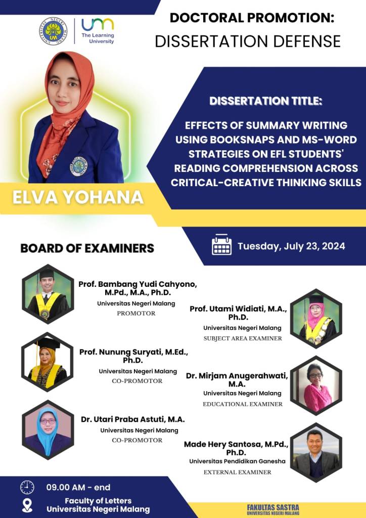 - Elva Yohana, Effects of Summary Writing Using Booksnaps and MS-Word Strategies on EFL Students’ Reading Comprehension across Critical-Creative Thinking Skills (2024)