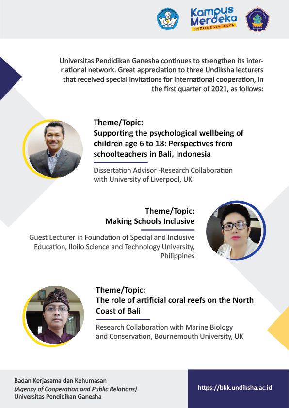 - Putu Adi Krisna, The Implementation of Technology-based Differentiated Instruction on English Class in Bali Context: Students’ Perspectives, Teachers’ Readiness, and Problems, Universitas Pendidikan Ganesha (2023 – present)